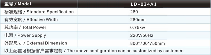 小型上膠機LD-034A1主要技術參數(shù) / Major technical parameters