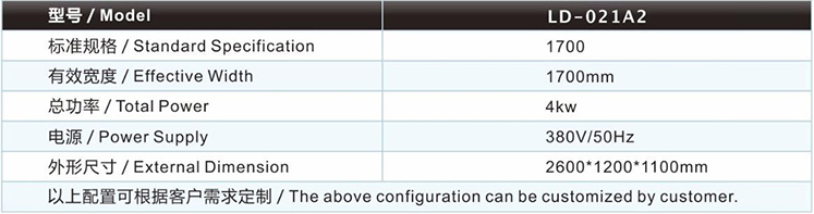 直刀裁條機LD-021A2主要技術參數(shù) / Major technical parameters